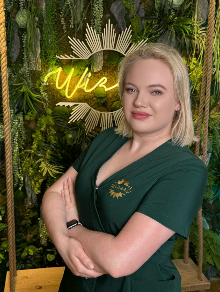 Osoba o wieloletnim doświadczeniu w zawodzie oraz ogromnej charyzmie. Jest głównym kosmetologiem Wizart. Zaopiekuje się Twoja Buzią oraz doradzi idealny zabieg dla Ciebie. Olgę cechuje życzliwość oraz wysoka higiena pracy. Klientki doceniają swobodną atmosferę, którą tworzy w trakcie wykonywania zabiegów.